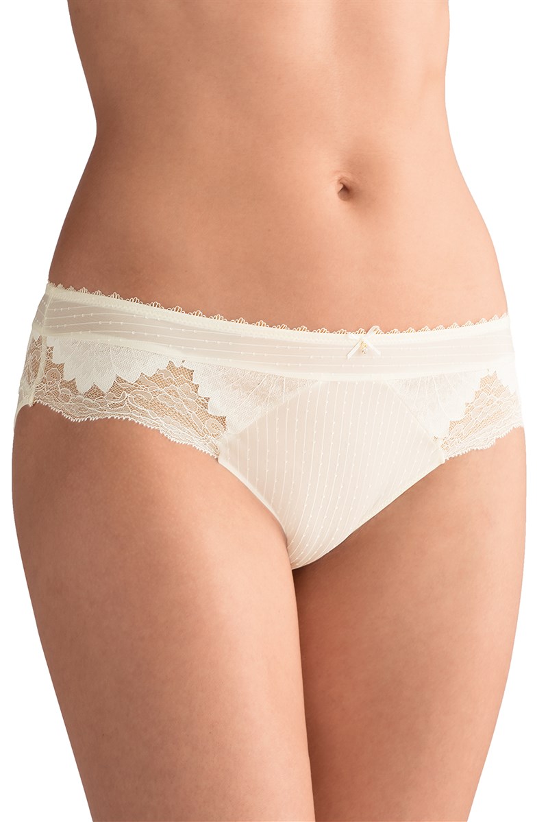 - Aurelie brief in off-white, with rich lace inserts at front and back to mirror the Aurelie bras