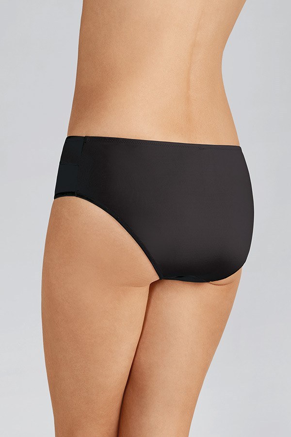An Amoena lingerie favourite: Complete your Lara Satin pocketed lingerie set in black with this gorgeous satin brief with rhinestone detailing. Available year-round as part of our permanent collection. Soft microfibre fabric with a satin waistline, you'll love this comfortable satin brief from Amoena, because it's seamless and smooth under clothing. Sits comfortably just below the waist to create a perfect lingerie look.