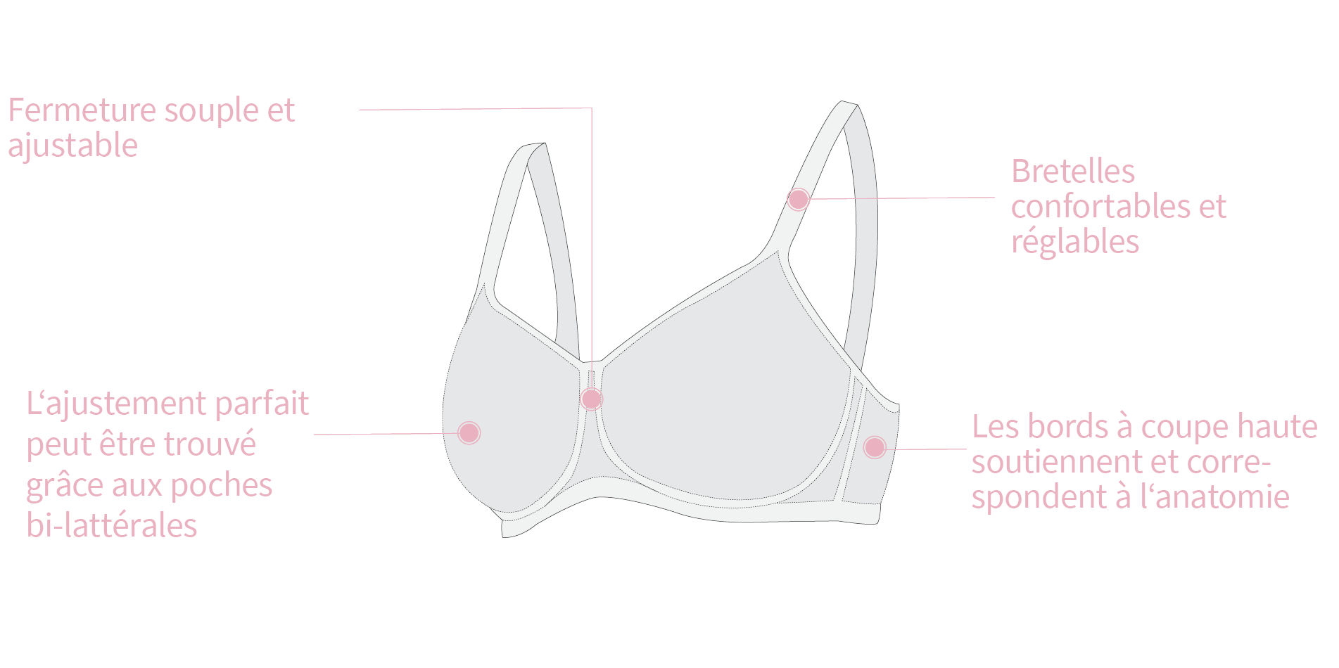 Les femmes qui portent une prothèse mammaire peuvent se sentir plus en sécurité et rassurées grâce à la coupe spécifique et aux propriétés particulières de nos soutiens-gorge post mastectomie. Les bretelles plus larges sont également bénéfiques en cas de lymphœdème et soulagent la pression au niveau des épaules et du cou.