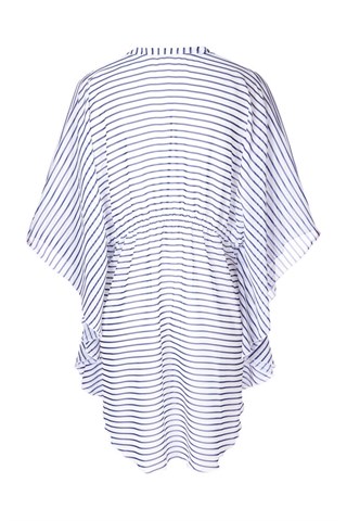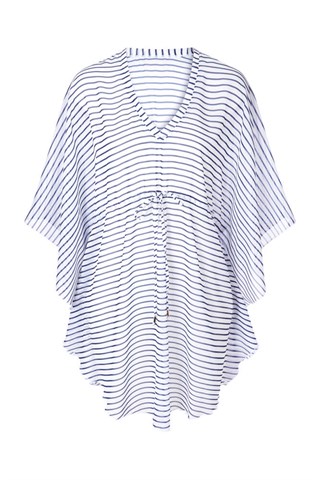 The Sylvie Tunic complements every suit in the Melissa Odabash collection; elegance that goes from sand to patio effortlessly. The light, short Sylvie tunic kaftan fits loosely and features Melissa's modern design aesthetic, calling to mind the energetic waves of moving water. A deep neckline draws attention to your face, and the short sleeves are light and airy. A belt to tie just under the bustline gives you that casual shape so comfortable for beach days.