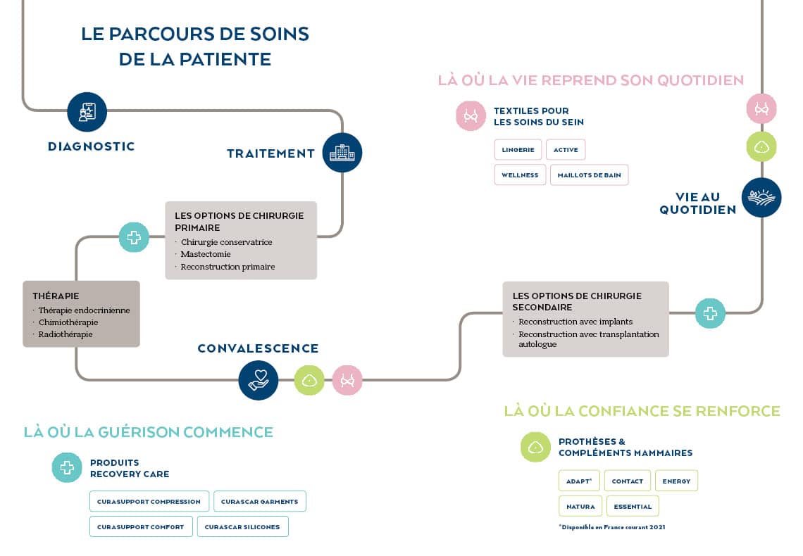 Cette approche signifie que nous savons exactement ce dont les femmes ont besoin tout au long de leur parcours contre le cancer du sein. C’est pourquoi nous proposons désormais des produits pour chaque étape du parcours de soins d’une femme.