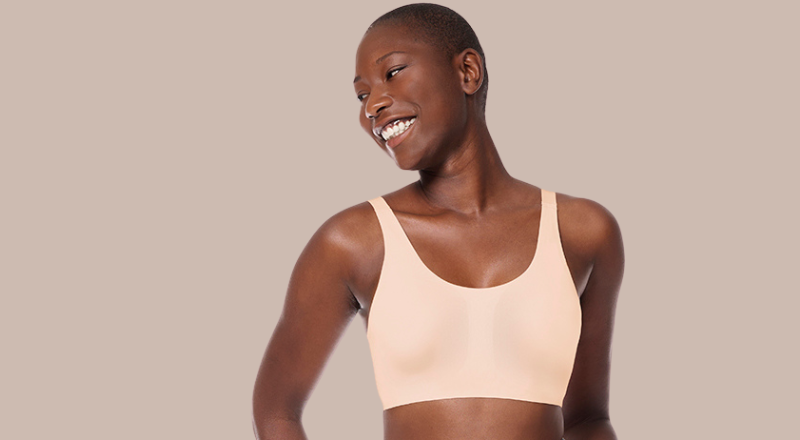 Wähle einen nahtlosen BH oder einen BH mit sehr flachen Nähten, denn der BH soll gut sitzen. Dicke Nähte können zu Hautreizungen führen oder den Lymphabfluss stören.