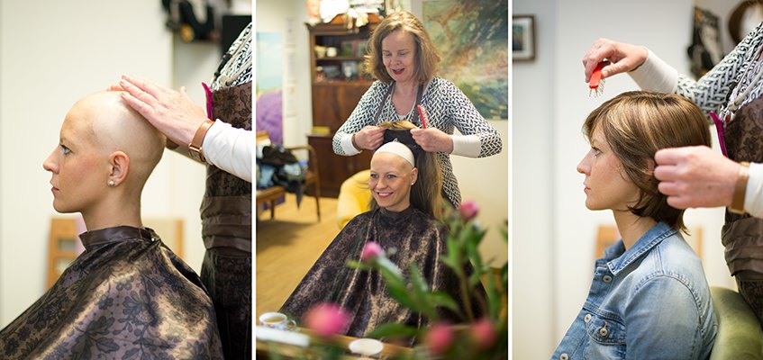 Durch den Haarausfall wird aus der zunächst immer noch abstrakten Krankheit Brustkrebs plötzlich sichtbare Realität. Einige Frauen, die auf die Krebsdiagnose selbst vordergründig gefasst reagieren, brechen dann emotional zusammen. Sabine Haase spricht mit ihren Patientinnen darüber, wie sie aktiv mit dem Haarverlust umgehen können, etwa ihr Haar vor Beginn der Chemotherapie selbst zu kürzen oder auch sich frühzeitig über Perücken und andere Alternativen zu informieren. So nehmen sie die unweigerlich bevorstehende Veränderung in die eigene Hand. „Idealerweise sollen sie aktiv sein“, so Haase, „und selbst die Kontrolle übernehmen.“