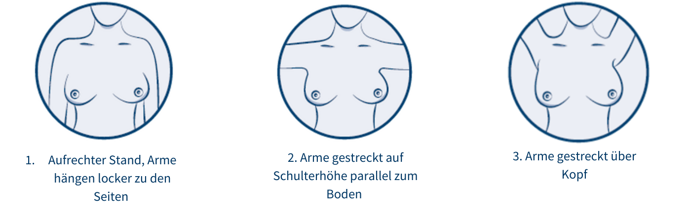 Das eigenständige, regelmäßige Abtasten dient als Maßnahme zur erleichterten Selbsterkennung von Veränderungen der Brust und ersetzt keine medizinische, professionelle Diagnose. Im Laufe des weiblichen Zyklus verändert sich die Brust hormonell bedingt und nicht immer handelt es sich um einen bösartigen Tumor. Wenden Sie sich im Zweifel immer an Ihren Gynäkologen!