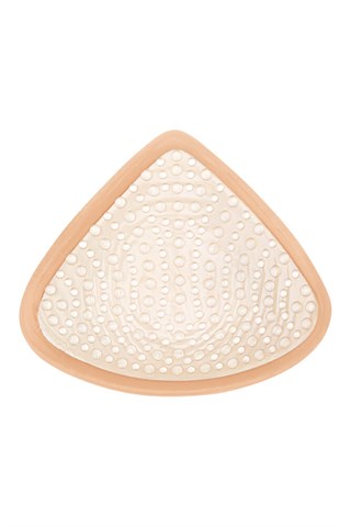 Fyldig facon. Symmetrisk facon, der kan bruges i begge sider. Fylder ikke under armen. Op til en tredjedel lettere end en standard brystprotese for den højeste komfort. En del af Contact familien, der klæber direkte på huden for den bedste sikkerhed og komfort. Med Comfort+ teknologi, der virker temperatur-regulerende.
