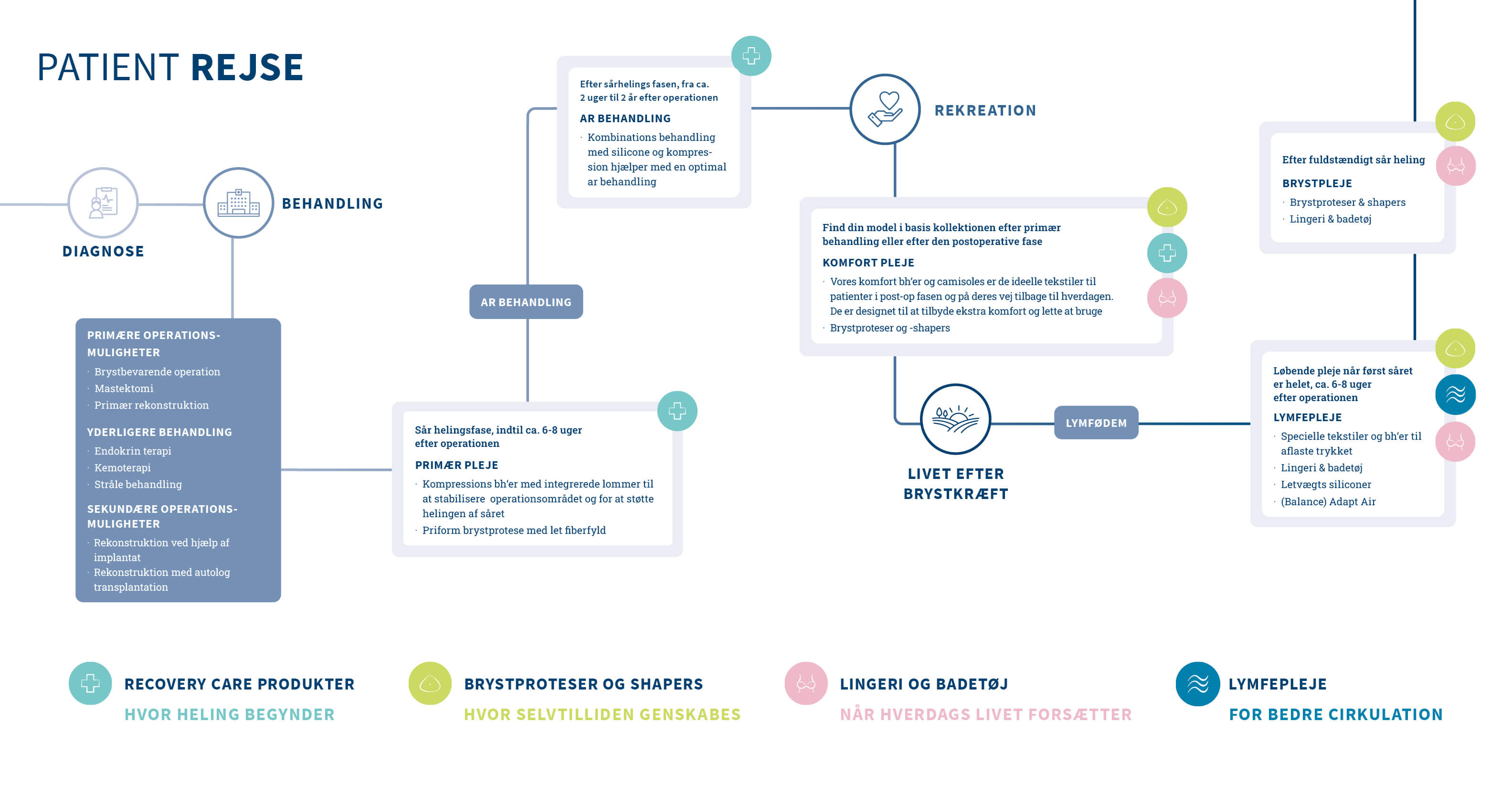 Produkterne fra Recovery Care serien, er specielt udviklet til behovene lige efter en brystoperation. Uanset de individuelle udfordringer ved forskellige kirurgiske metoder, såsom mastektomi, lumpektomi eller en brystrekonstruktion, understøtter vores produkter helingsprocessen optimalt.