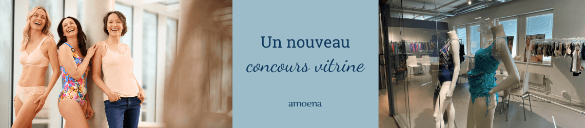 ✔️ 1 - Décorez votre vitrine (ou votre espace de vente) grâce aux produits et outils de communication Amoena.