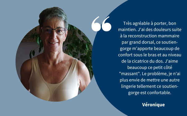 Pour le lymphœdème du sein ou pour un lymphocèle, le plus souvent la problématique est la taille de l’œdème, ce qui peut être gênant dans le quotidien et pour s’habiller. Elles ont souvent besoin de se sentir bien « soutenu » par les vêtements ou sous-vêtements.