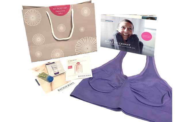 Vous venez d'être opérée du sein. Vous pouvez recevoir gracieusement le kit douceur Amoena, contenant une brassière ultra douce qui n'exercera pas de pression sur la cicatrice. Sans poche, elle vous accompagne pour votre sortie d'hôpital pour vous éviter l'inconfort de votre soutien-gorge suite à l'opération. En outre, elle est facile à enfiler par le bas si la mobilité du bras est réduite.