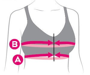 Next, measure from the middle of your chest over the fullest part of your remaining breast, all the way around (B).