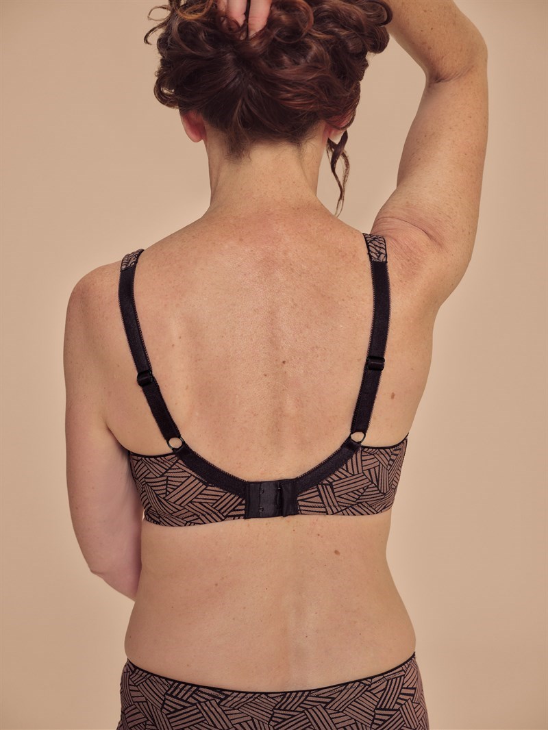- A:The bra has softly padded back closure, wide padded front straps, and moulded bilateral pockets made of breathable, temperature balancing material for comfort throughout the day.