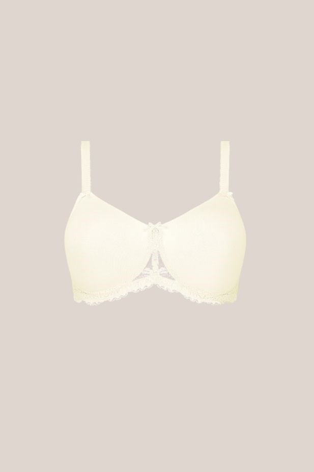 - Padded soft bra made of a comfortable cotton material at cups and back in combination with a rich cotton lace at the cradle