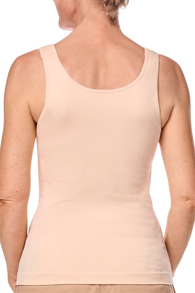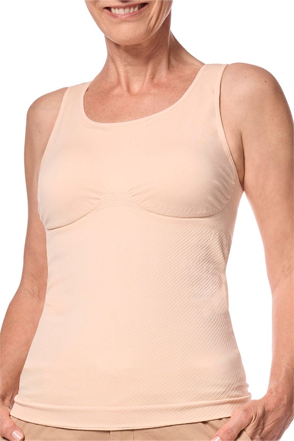 This is the best tank I’ve bought for post-radiation lymph issues, and I’ve tried many. The construction is impressive and the straps comfortable. It holds my mismatched breasts well…no jiggling. The fabric is pleasant against the skin without triggering the sweats. I can even wear it through the night! Don’t know how you did it, but for this design, I am impressed and grateful. (Request: A coffee color would be nice)