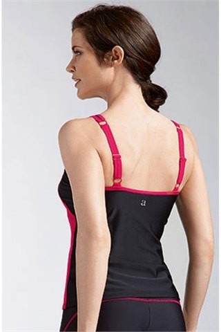 Uniquely designed high neck tank top that offers support with style. Color blocks in contrasting colors and diagonal angles flatter the figure. The built-in pocketed shelf bra gives you support without visible straps??�plus two performance features, COOLMAX?� ACTIVE and Comfort+, help reduce perspiration.