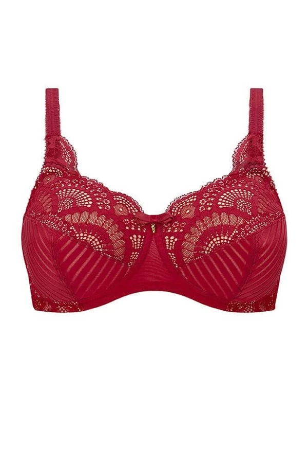 - A:It combines luxurious fan lace in the top cup with shiny hide and seek stripe fabric accented by gold-coloured details for a feminine look.