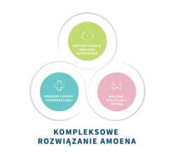 Naszym celem jest zaspokojenia potrzeb kobiet operujących biust w jeszcze bardziej kompleksowy sposób. Jednym z elementów jest rozszerzenie naszego portfolio o segment Produktów pooperacyjnych – bielizny stabilizującej oraz opatrunków sylikonowych na blizny. Jesteśmy dumni z tego, że wspieramy kobiety podczas ich powrotu do zdrowia, od diagnozy do codziennego życia. Dlatego naszą koncepcję nazywamy „Kompleksowym Rozwiązaniem Amoena”.
