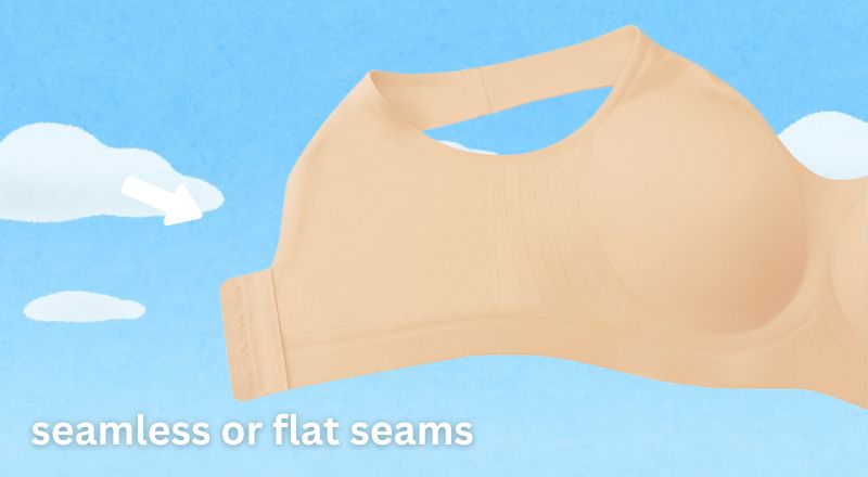 Look for a bra that is seamless or made with very flat seams, you want to make sure the bra is sitting smoothly on your skin. Bulky seams can cause irritation to your skin or disrupt lymphatic drainage.
