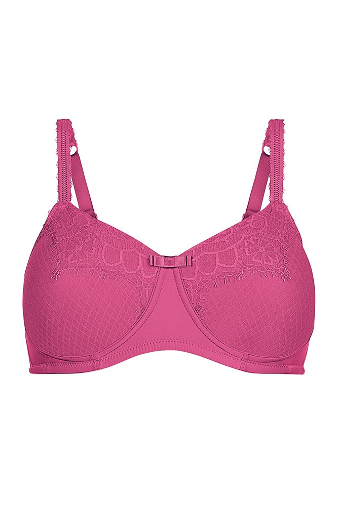 Your everyday bra collection needs this extra light Fiona padded wire free bra. Sweetly dressed in diamond jacquard fabric at the cups and back, and accented with rich, feminine lace in the same color, the Fiona padded wire free bra is a fresh look you'll love. Super soft microfiber at the back of the Fiona bra feels soft against your skin, and in the pockets, while two layers of soft foam in the bra cups feel light as air. Bilateral pockets keep your Amoena breast form secure so you can go about your day in style and confidence.