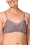 The Liz Wire-Free Padded Bra is designed with discreet bilateral pockets to securely hold a breast form, making it an ideal choice for confident and comfortable wear. Its molded, padded cups effectively conceal unevenness, rendering it a perfect T-Shirt bra for a seamless look under clothing. Crafted from ultra-soft microfiber with an elegant geometric print and subtle two-tone effect, complemented by a super-soft elastic lace band at the neckline, this bra offers both individual style and everyday comfort. Moreover, the breathable, temperature-balancing microfiber pockets ensure a pleasant skin climate. The bra's adjustable length, elastic back straps and softly padded back closures enhance overall wearing comfort.