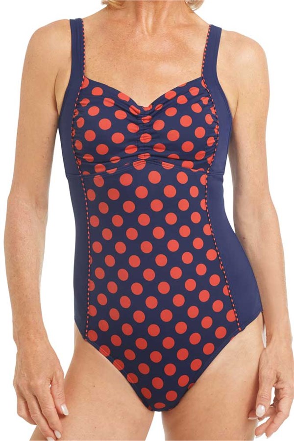 - Mesh detailing at the top to discreetly cover surgery or radiation scars and ruched draping at the front is figure flattering