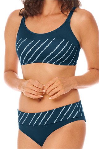 Designed to be your most versatile summer staple, our Timeless Chic swimwear collection is best for those who want to look stylish and feel comfortable all day. With a harbor theme design, the elegant swimwear group is made from the high-performance stretch fiber, LYCRA® XTRA LIFE™ for long lasting fit and shape retention, with great chlorine resistance and excellent UV Protection 50+ for a stunning fit for so much longer! And to add, a supportive inner top construction featuring a wide underbust band, our innovative Amoena Wave Seam keeps your Aqua Wave breast form securely in place.